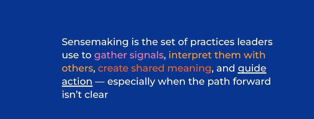 Sensemaking, as I framed it, is inherently collective. It is how groups interpret incomplete information without fracturing or defaulting to urgency.
